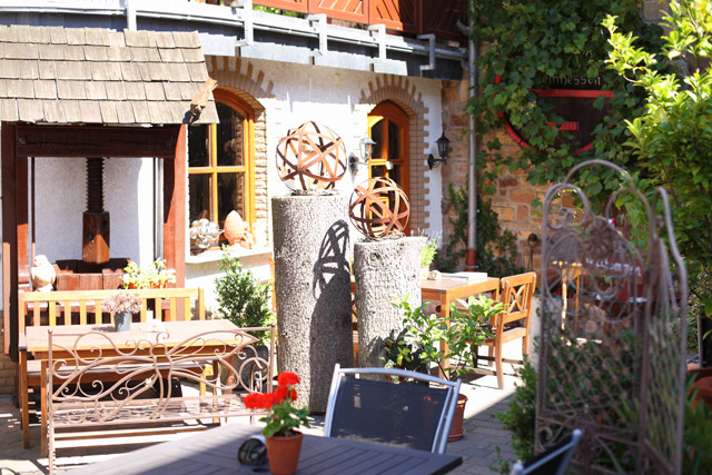 Zur Weinstube gehören der moderne Gutskeller mit alter Gewölbedecke, die großzügige Gutsscheune und ein mediterran gestalteter Innenhof, der Sie schöne Sommerabende draußen genießen lässt.